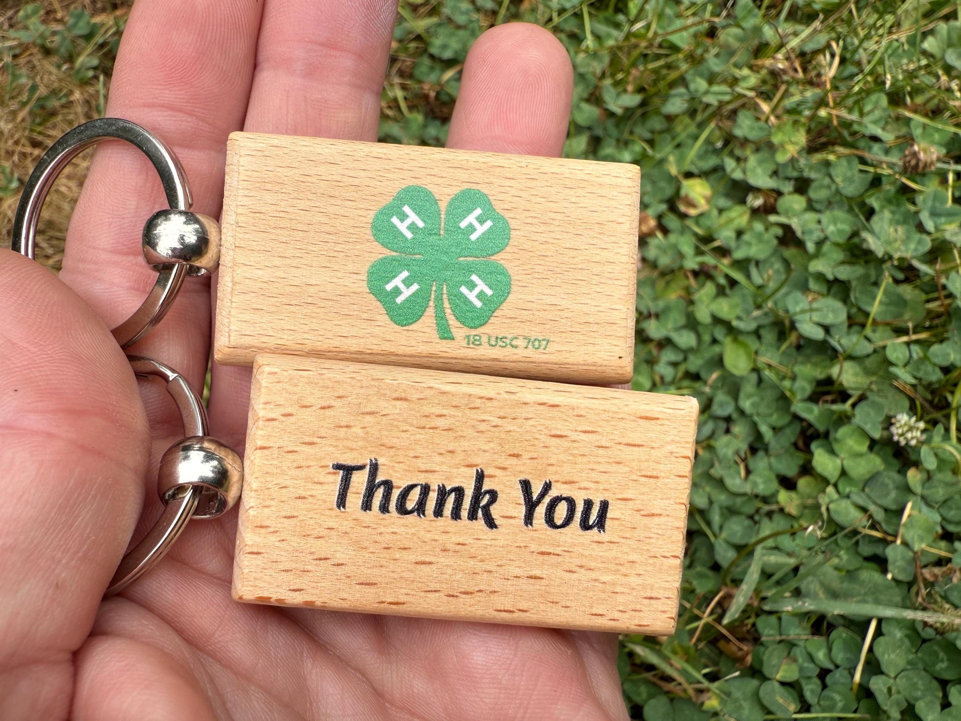 4-H Livestock Show Buyer Gift: Maple Wood Thank You Keychain
