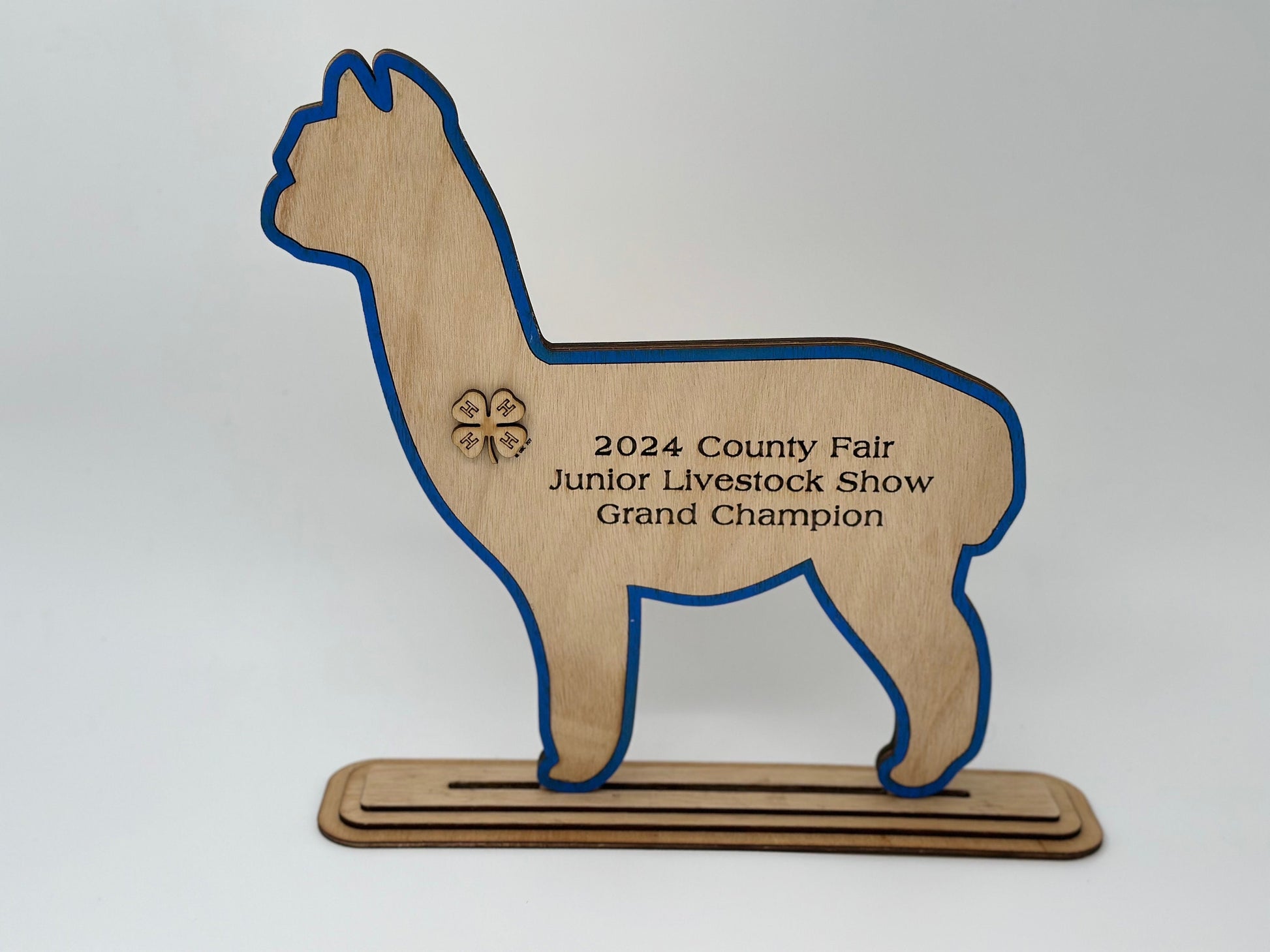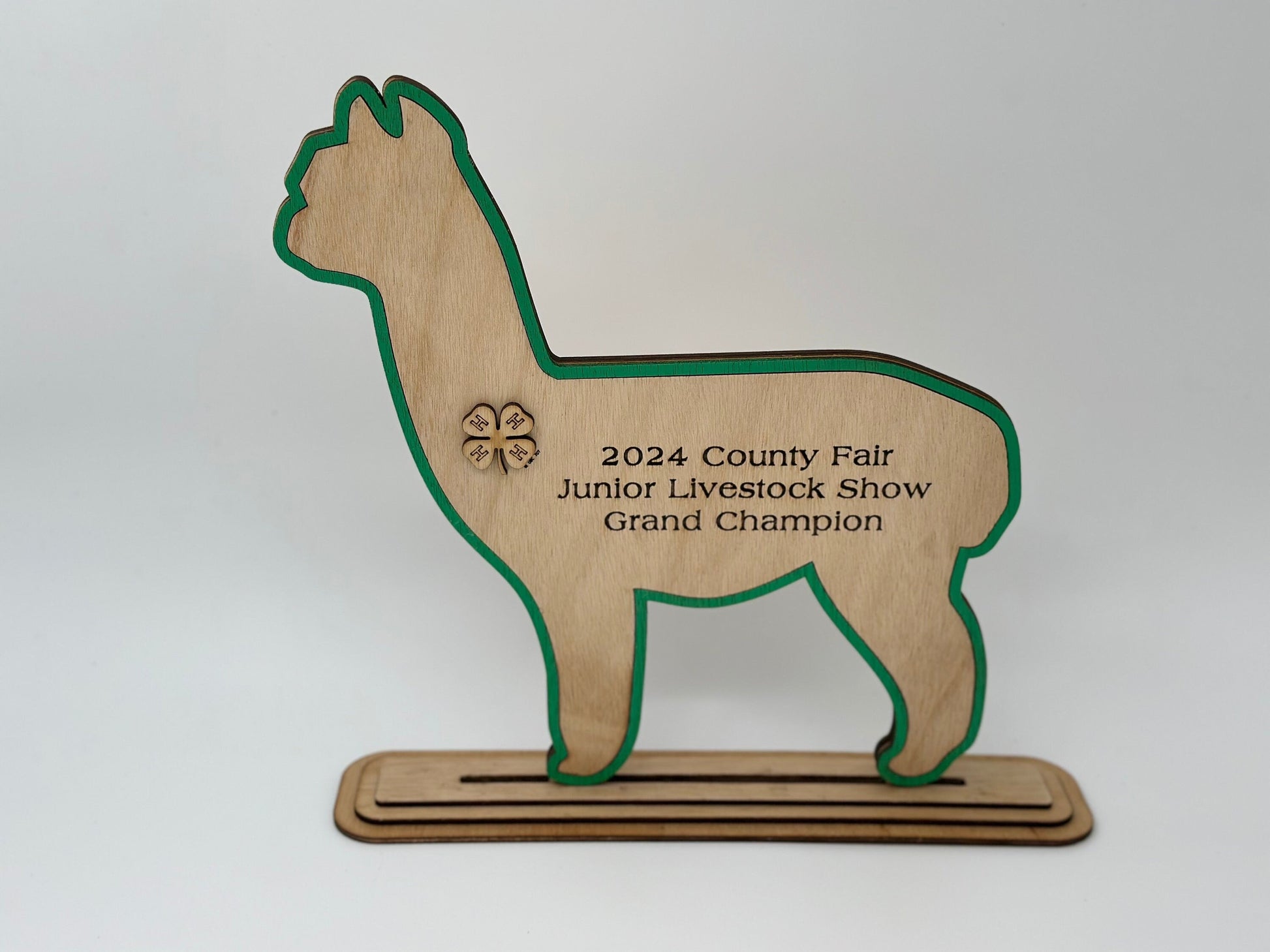 Alpaca Show Award for livestock shows fairs and expos 4H 4-H Trophy