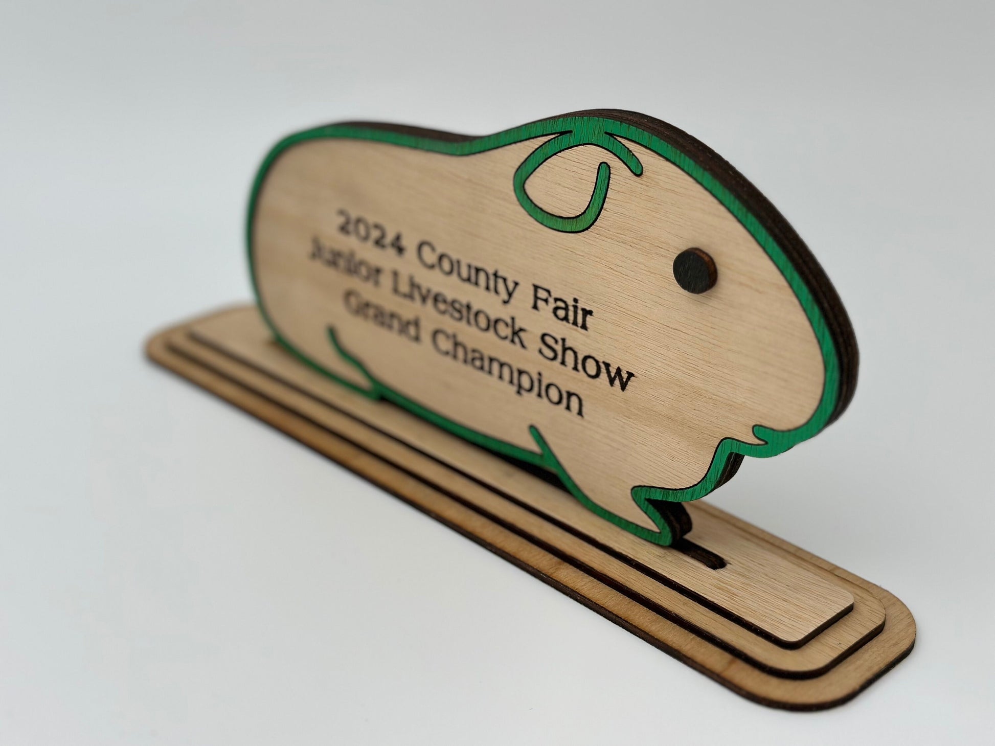 Award our hard-working youth with the trophy they deserve! Text can be customized for any show/class/age/fair. If you don‘t see your animal or have an idea, then let us know. I am making these awards to promote our youth‘s interest in raising animals and family living. Please share your photos of your items when they are all setup for presentation. Made in the USA on our farm in Washington state.