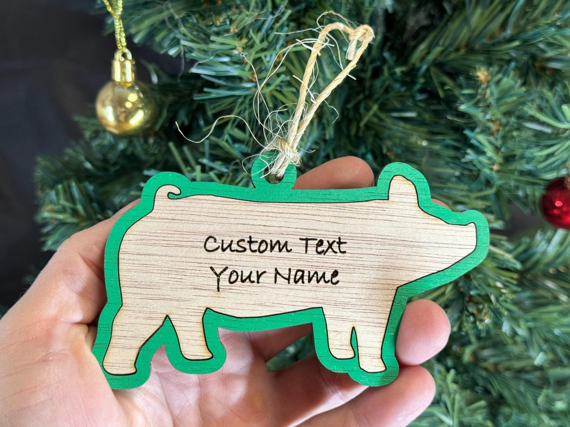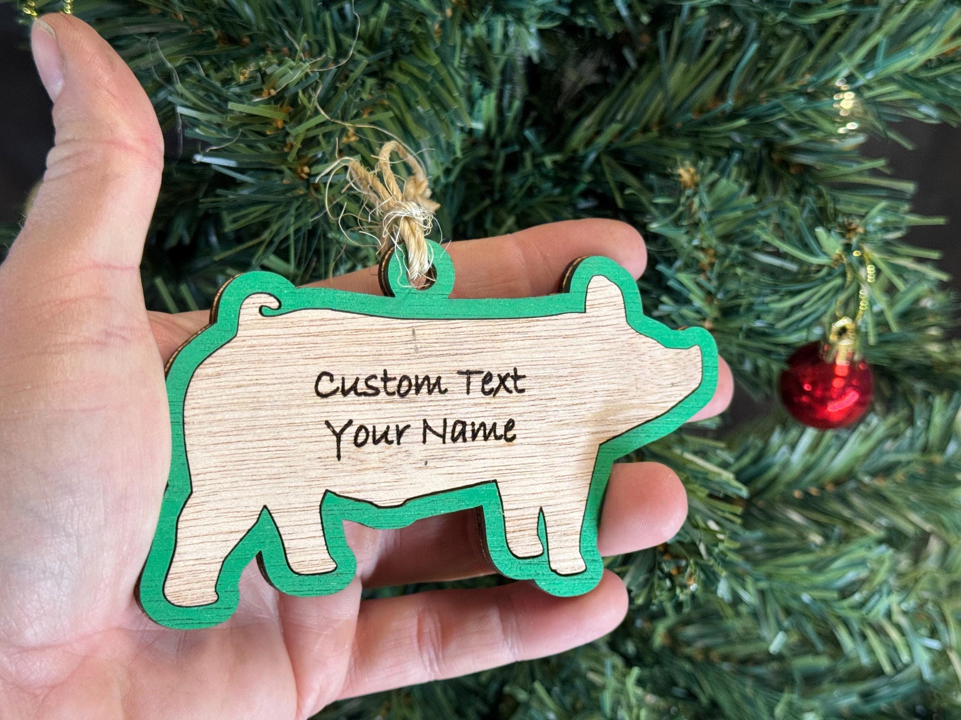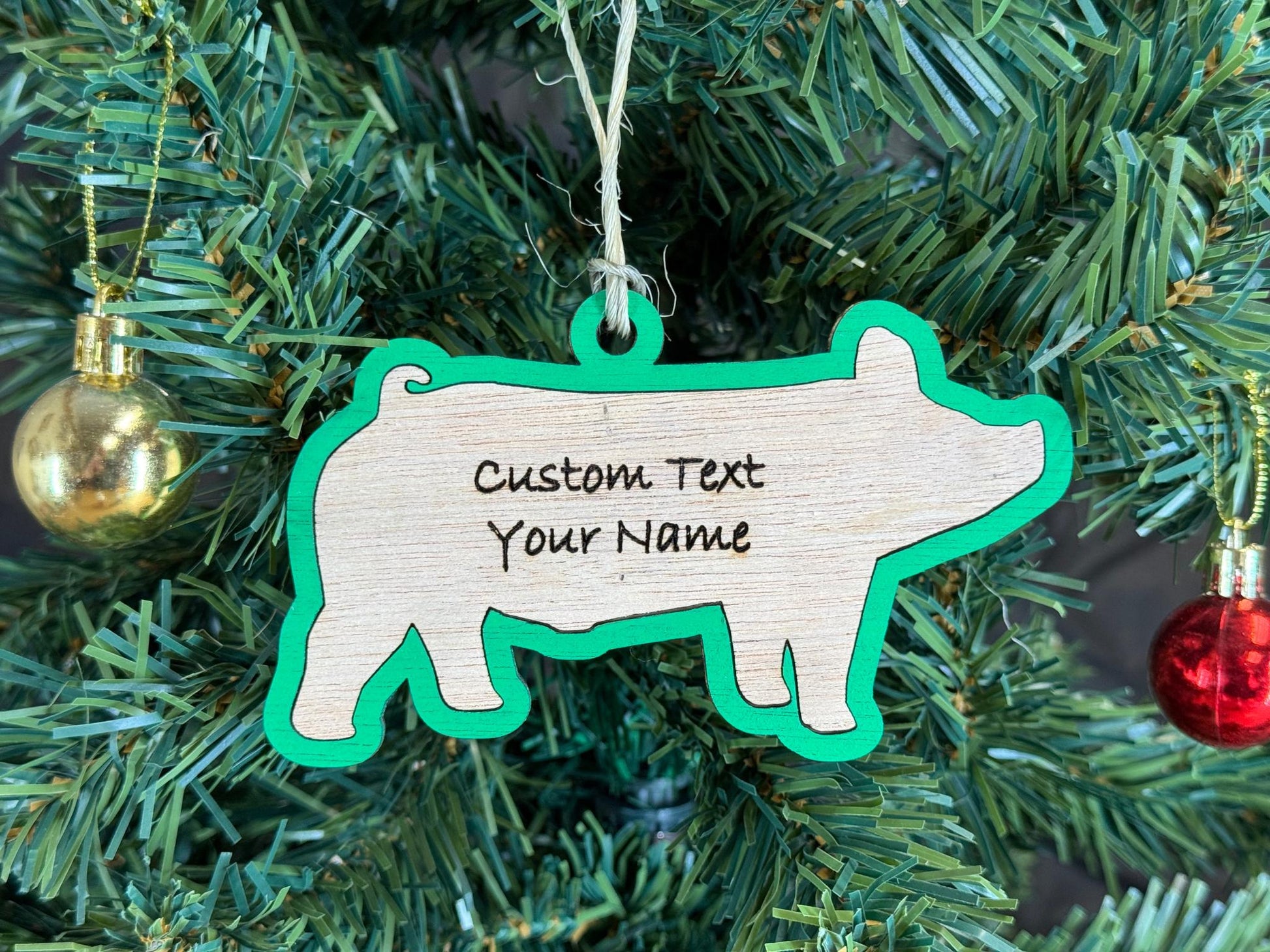Custom Pig Christmas Ornament: Plywood Pig Lover Gift