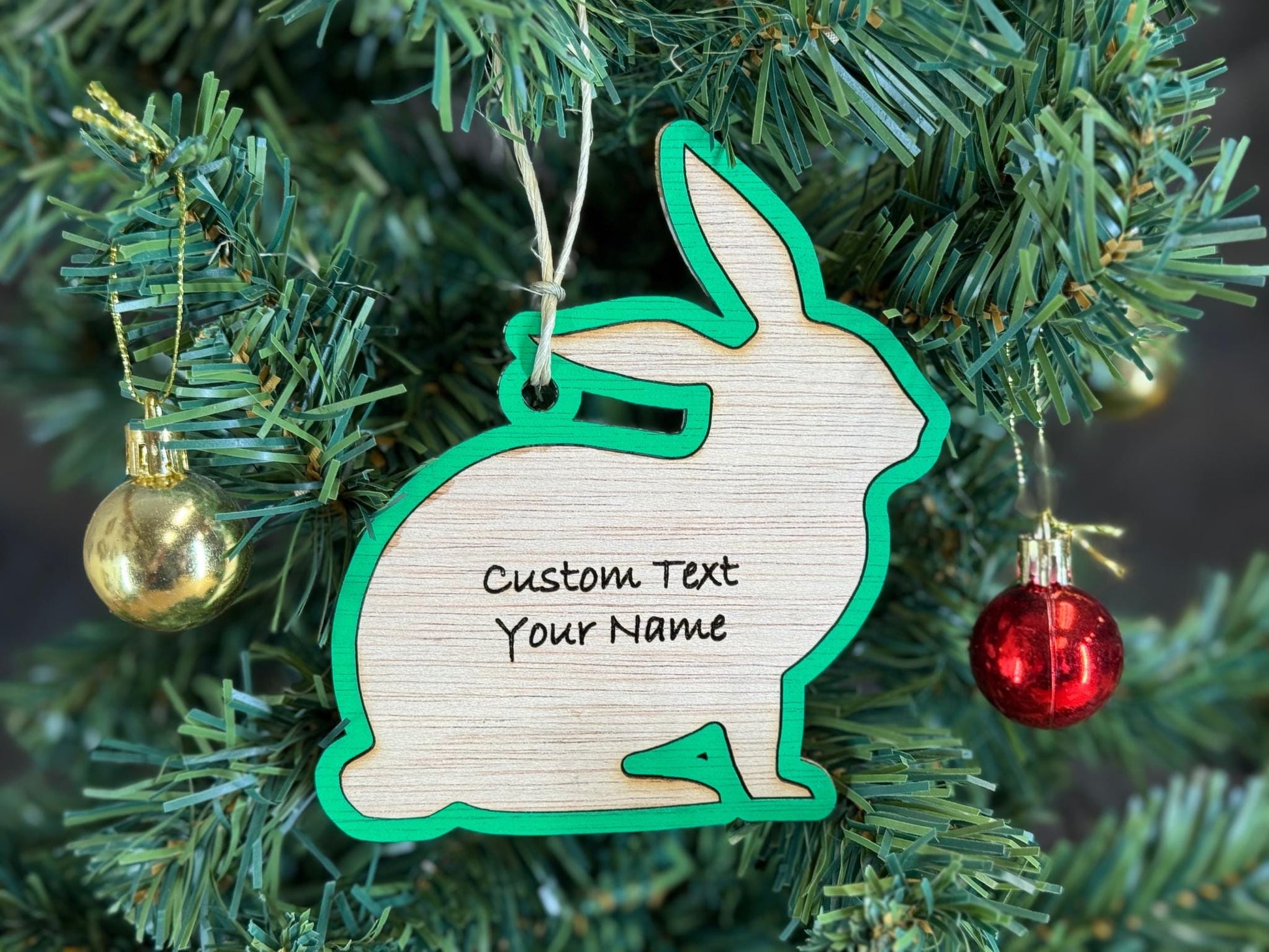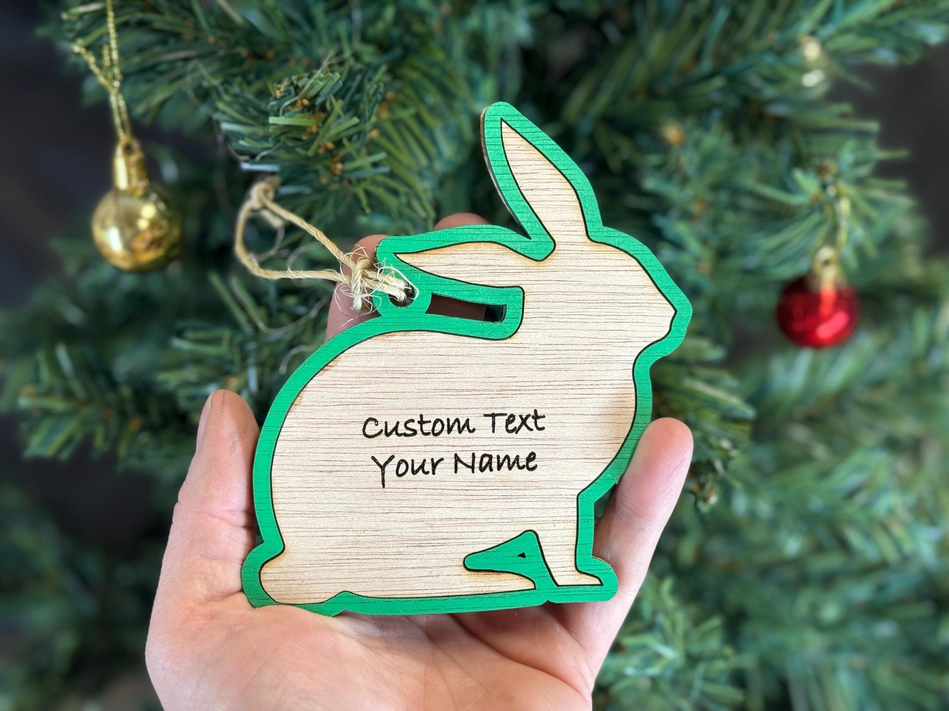 Customizable Rabbit Christmas Ornament: Plywood Bunny Gift