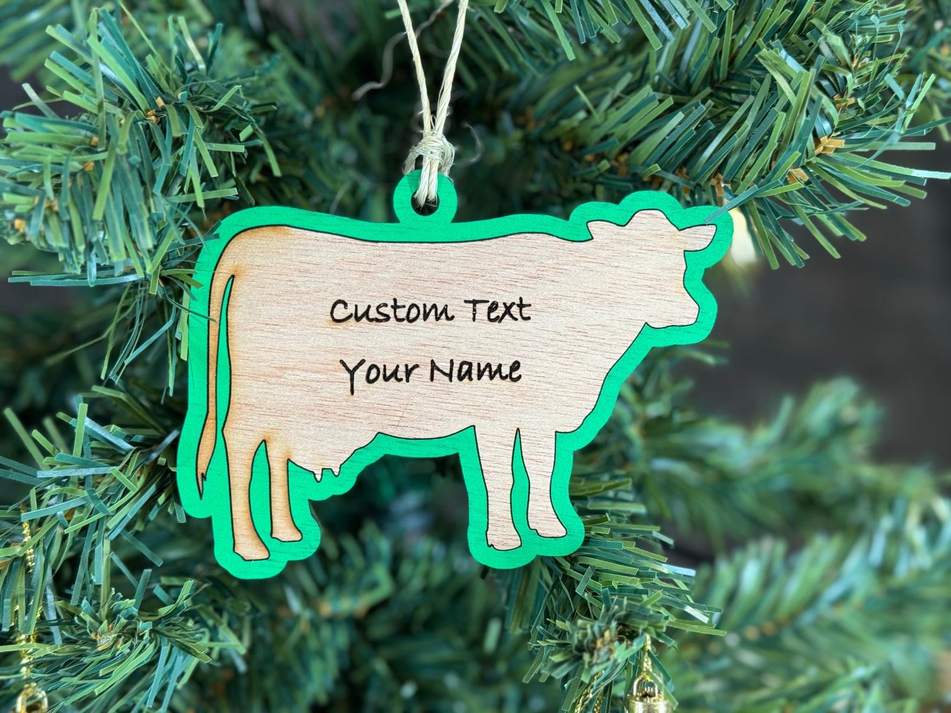 Dairy Cow Christmas Ornament: Custom Plywood Cow Lover Gift