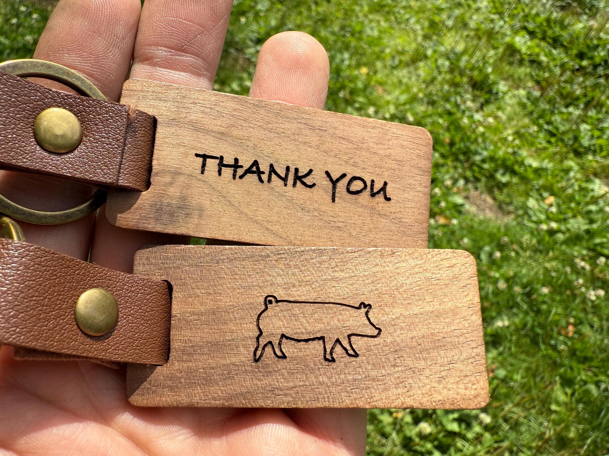 Engraved Walnut Market Hog Keychain: Livestock Show Buyer Gift