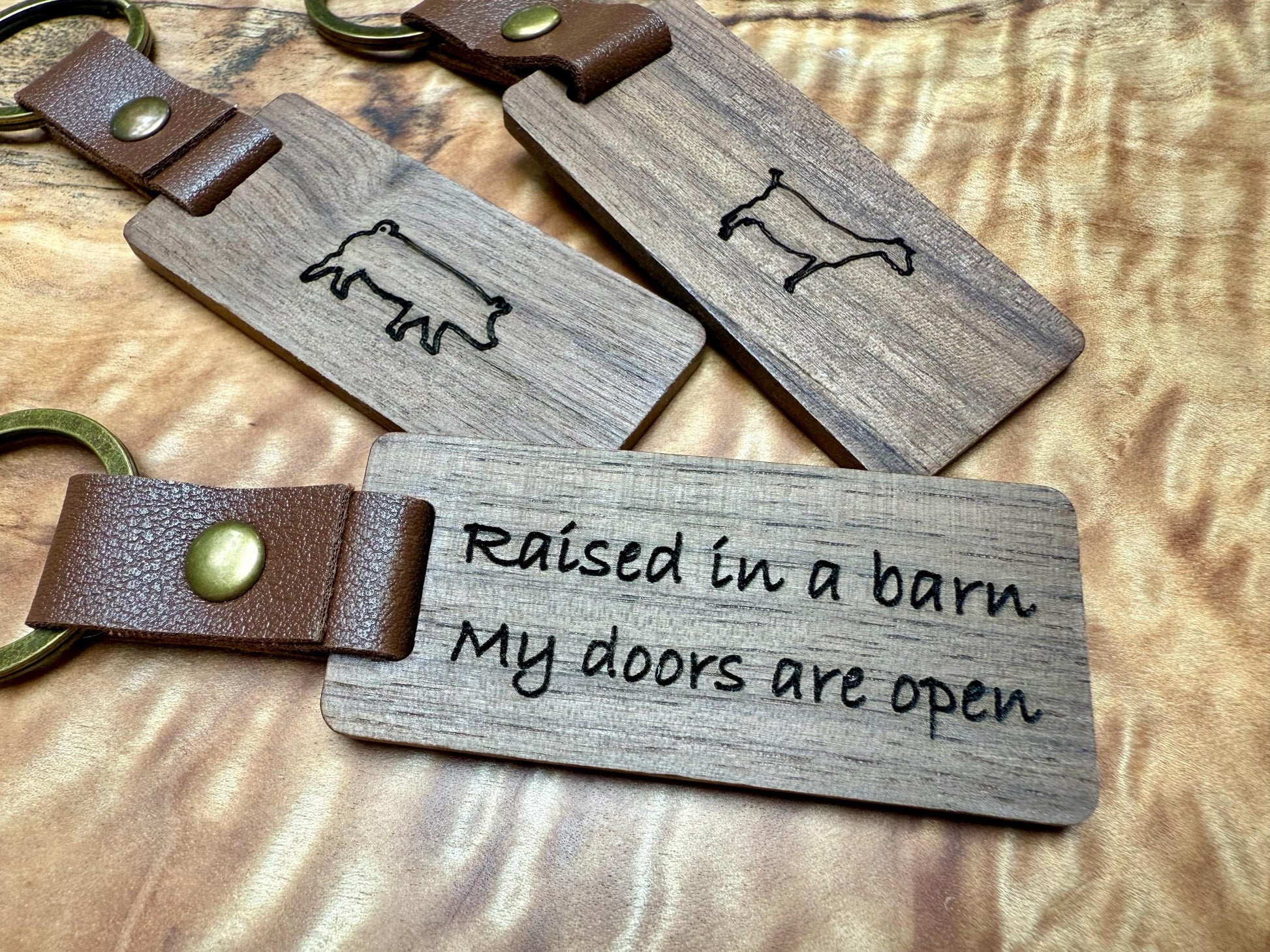 We‘re you raised in a barn like us? Is your door always open to opportunities? This is our made to order keychain that can have any farm animal on it (reach out to us if you‘d like another animal, symbol or logo!). We love making new items and are doing this to help support our youth in agriculture. We can make large orders for clubs groups or gifts for friends. Right now, we have made steer, hog, lamb, goat, chicken, rabbit, 4h clover, llama, alpaca, horse, rat, cavy, deer, custom logos, or sports...