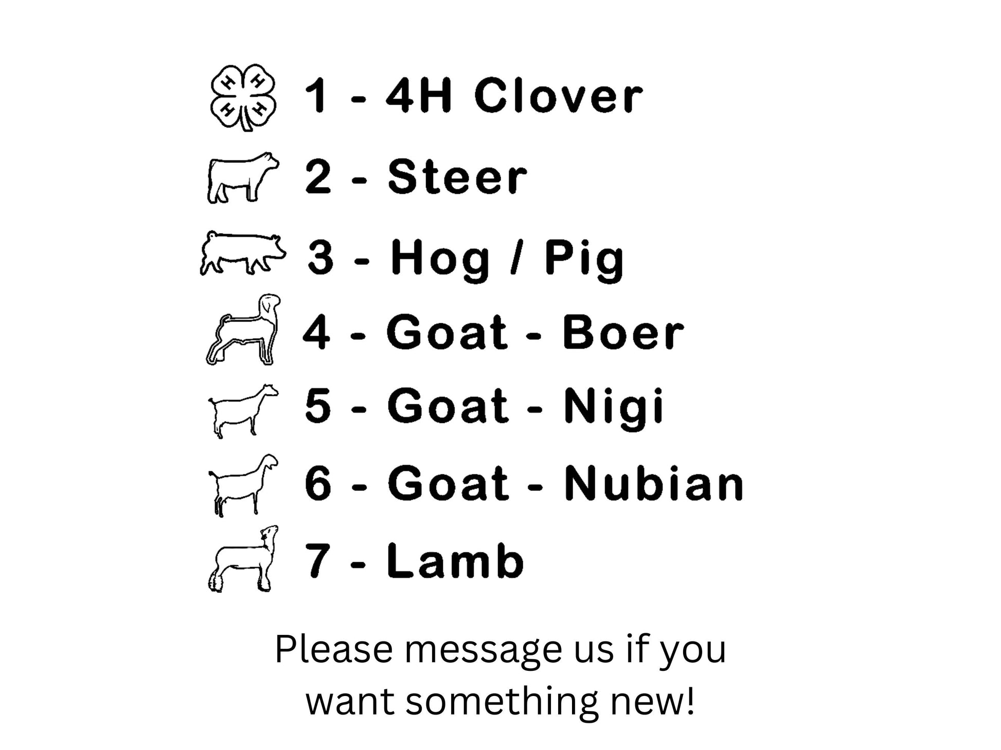 Made to order custom keychain graduation gift for your upcoming graduation that can have any farm animal on it (reach out to us if you‘d like another animal, symbol or logo!). We love making new items and are doing this to help support our youth in agriculture. We can make large orders for clubs groups or gifts for friends. Right now, we have made steer, hog, lamb, goat, chicken, rabbit, 4h clover, llama, alpaca, horse, rat, cavy, deer, custom logos, or sports...