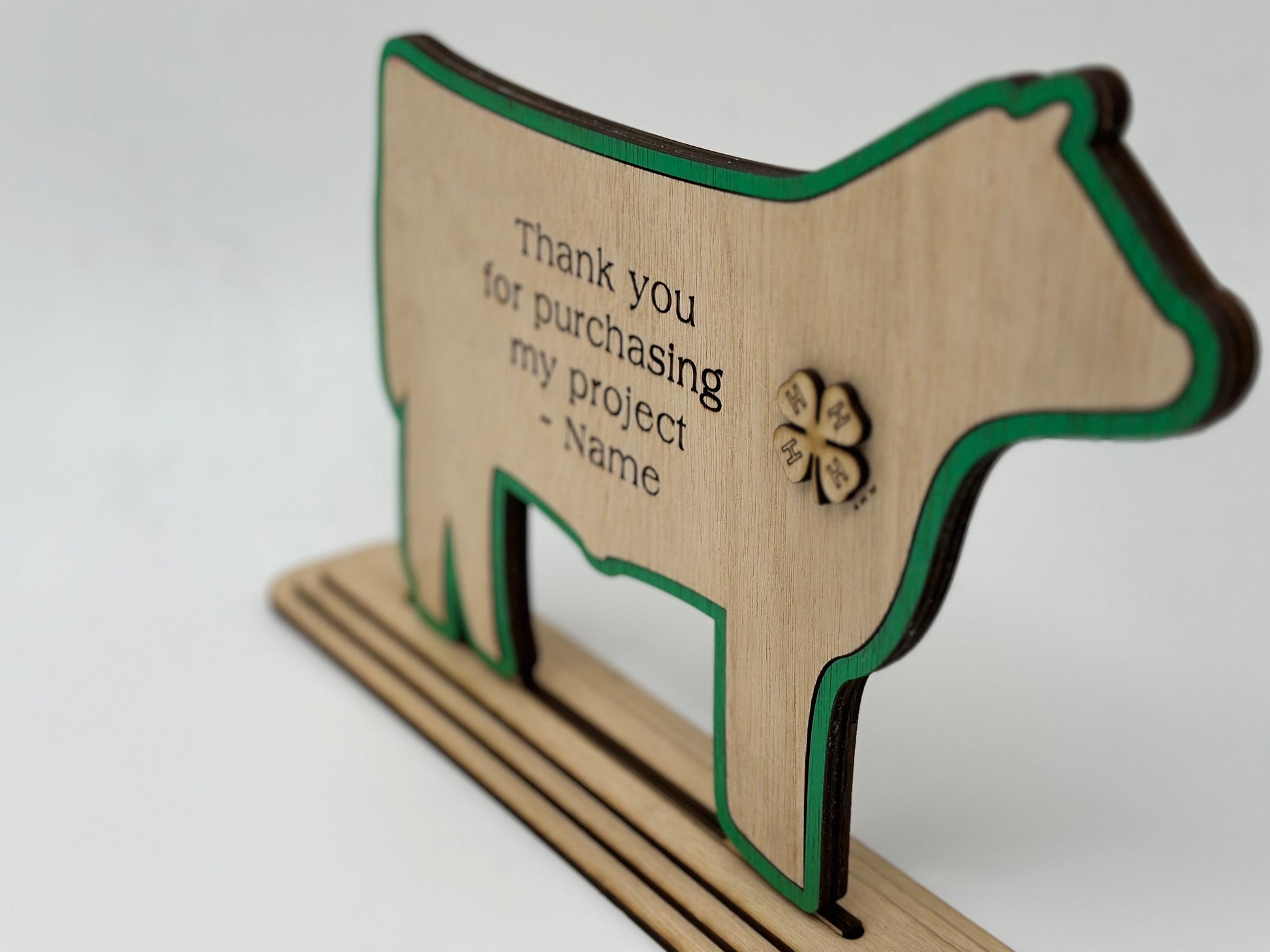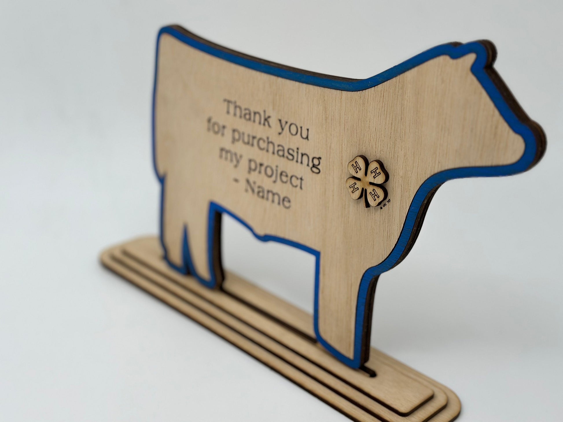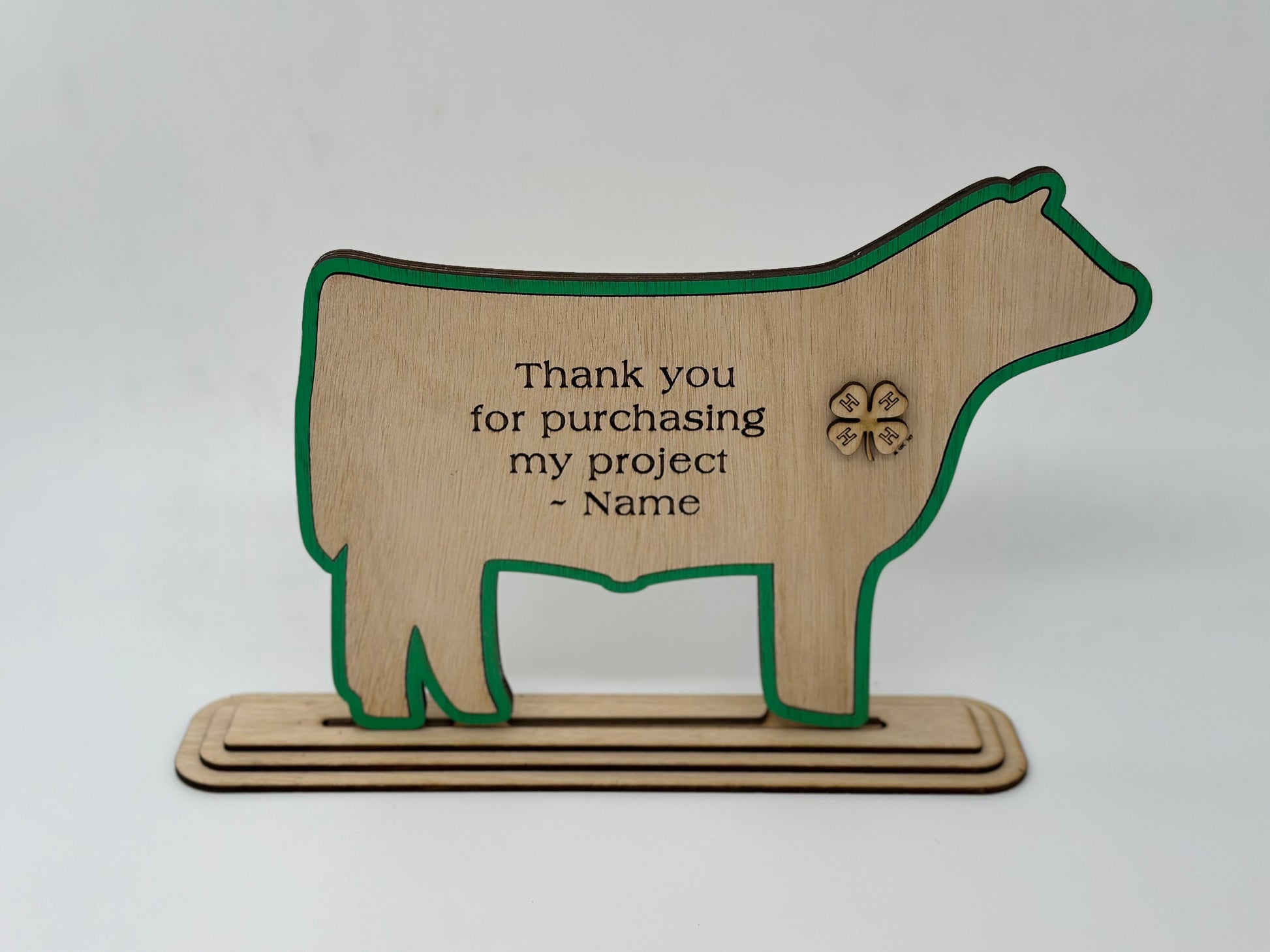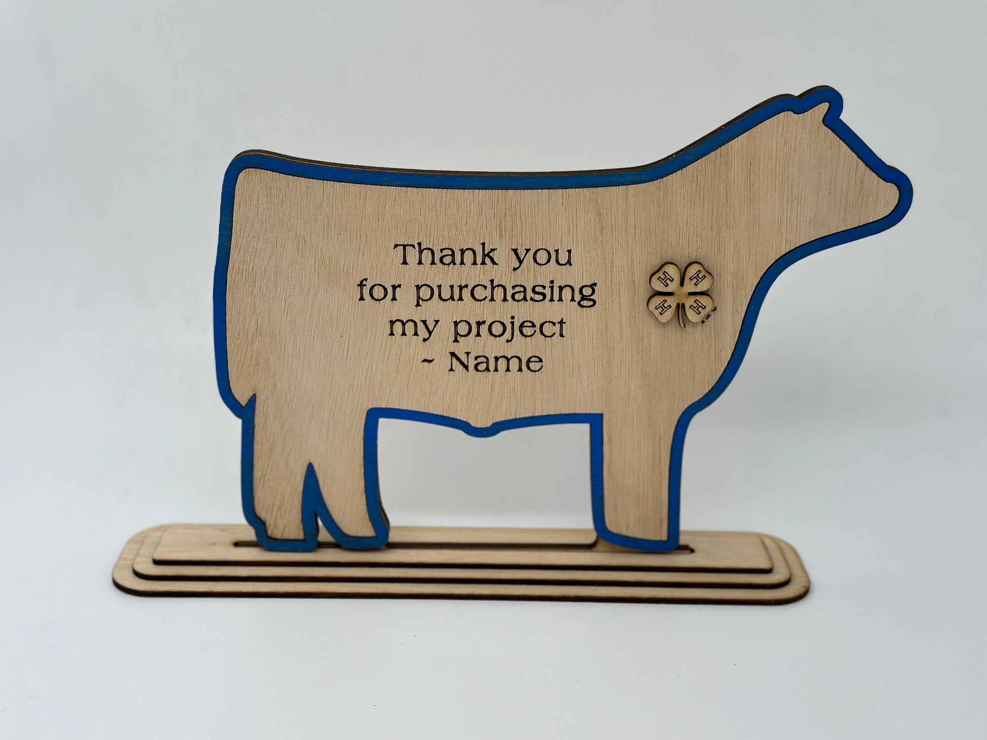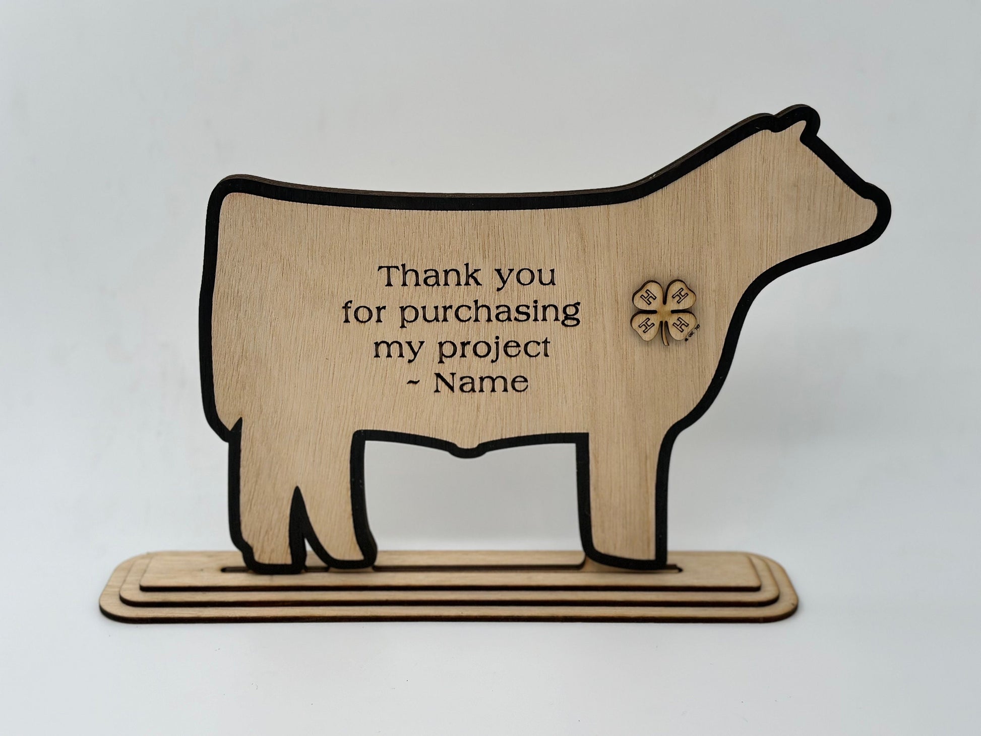 Handcrafted Wooden Steer Trophy: Livestock Show Buyer Gift