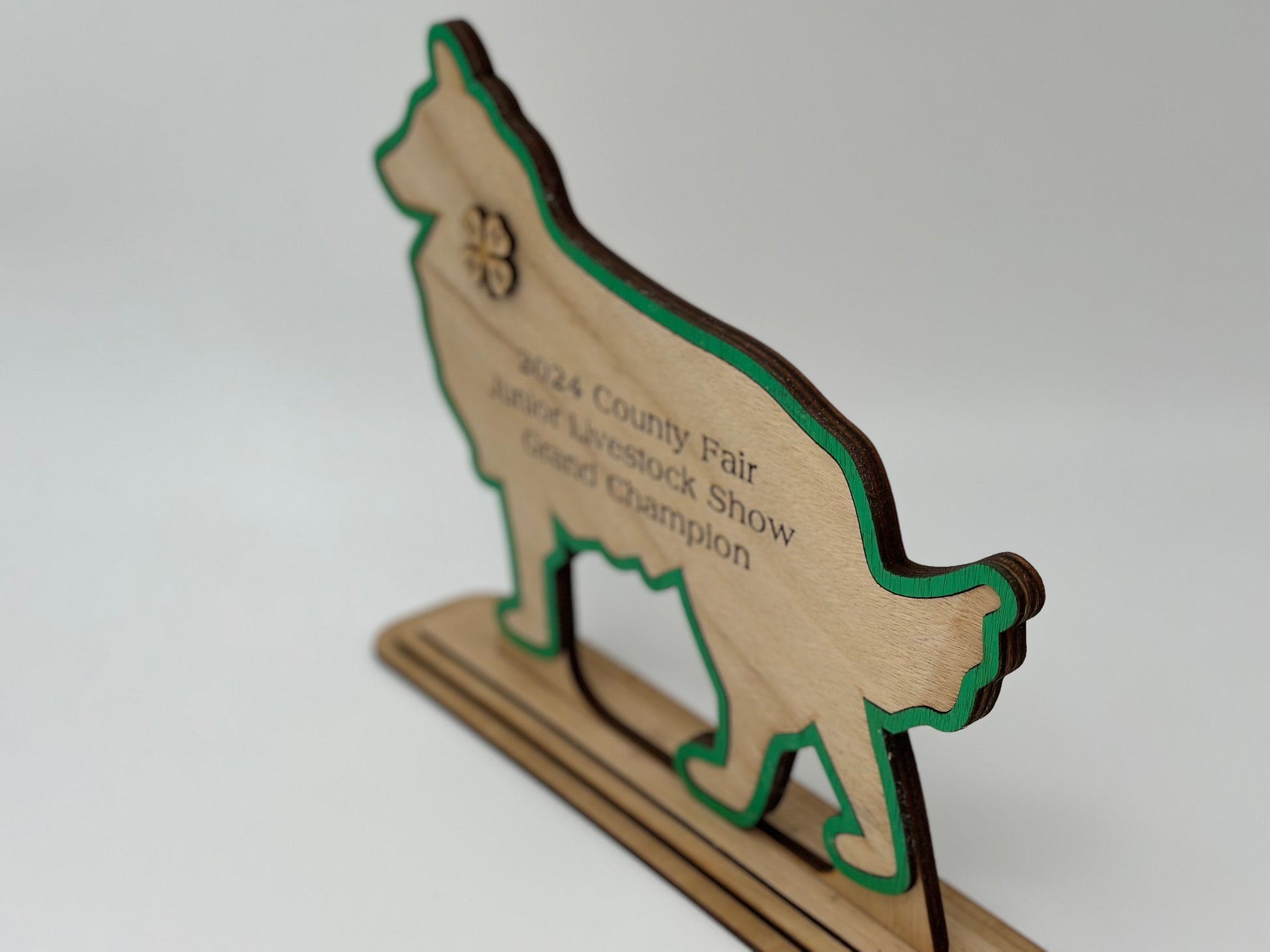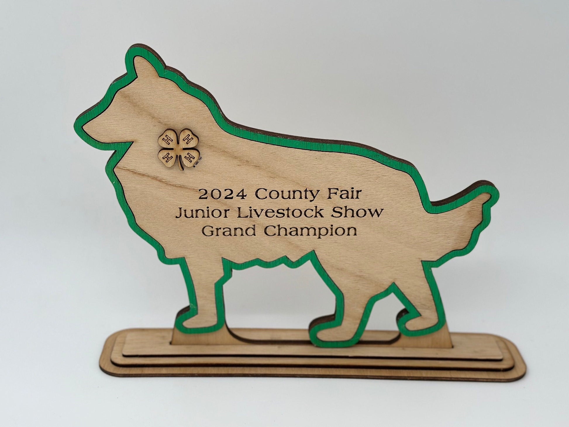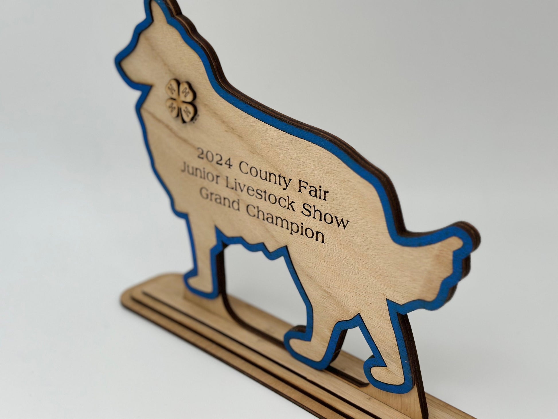 Award our hard-working youth with the trophy they deserve! Text can be customized for any show/class/age/fair. If you don‘t see your animal or have an idea, then let us know. I am making these awards to promote our youth‘s interest in raising animals and family living. Please share your photos of your items when they are all setup for presentation. Made in the USA on our farm in Washington state.