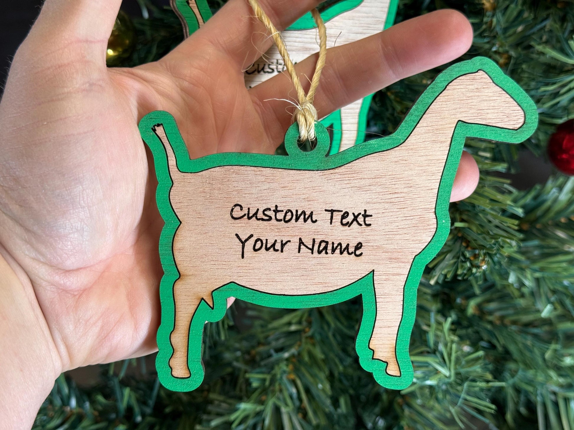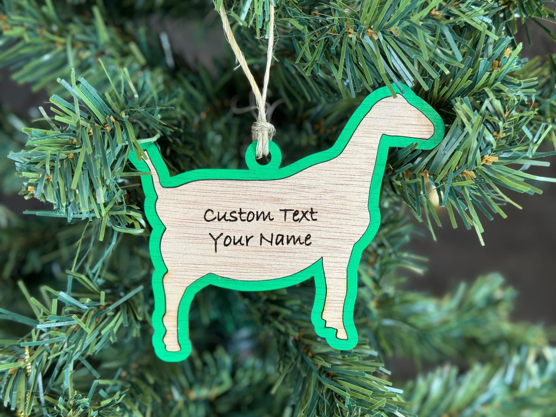 Check out our Lamancha Goat Ornament that you can customize to your liking! We offer many colors and sizes to choose from! We can support large orders and can offer discounts if you ask!