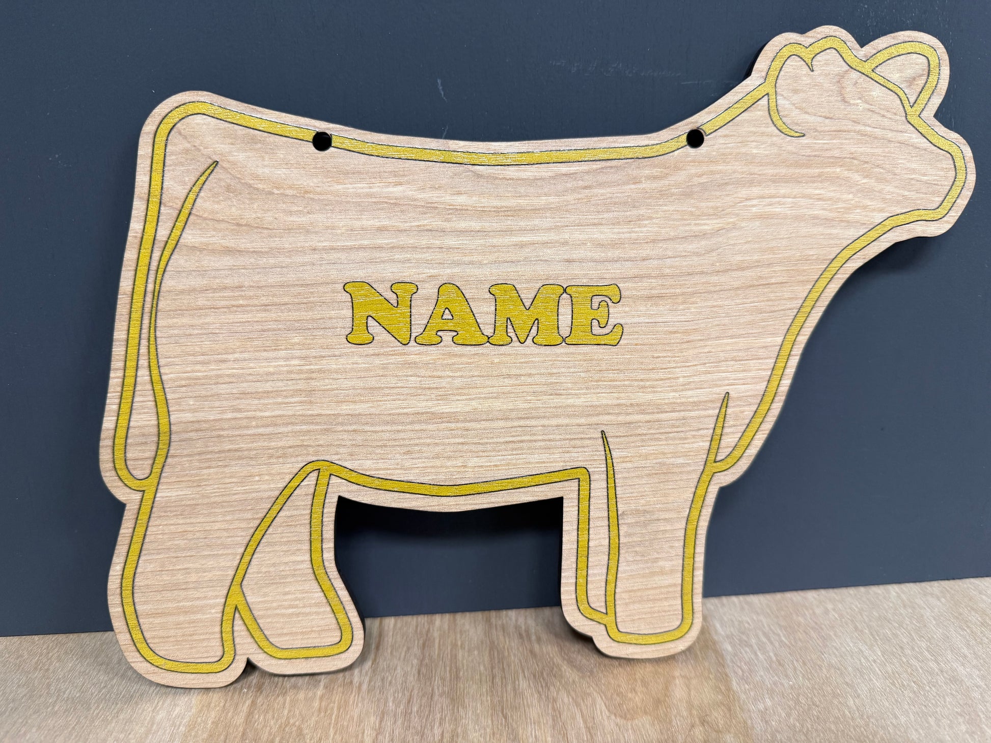 Heifer Stall sign for taking them to shows. Also works for feeder calf. If you want another animal just reach out to us via the chat or goatswithlasers@gmail.com.