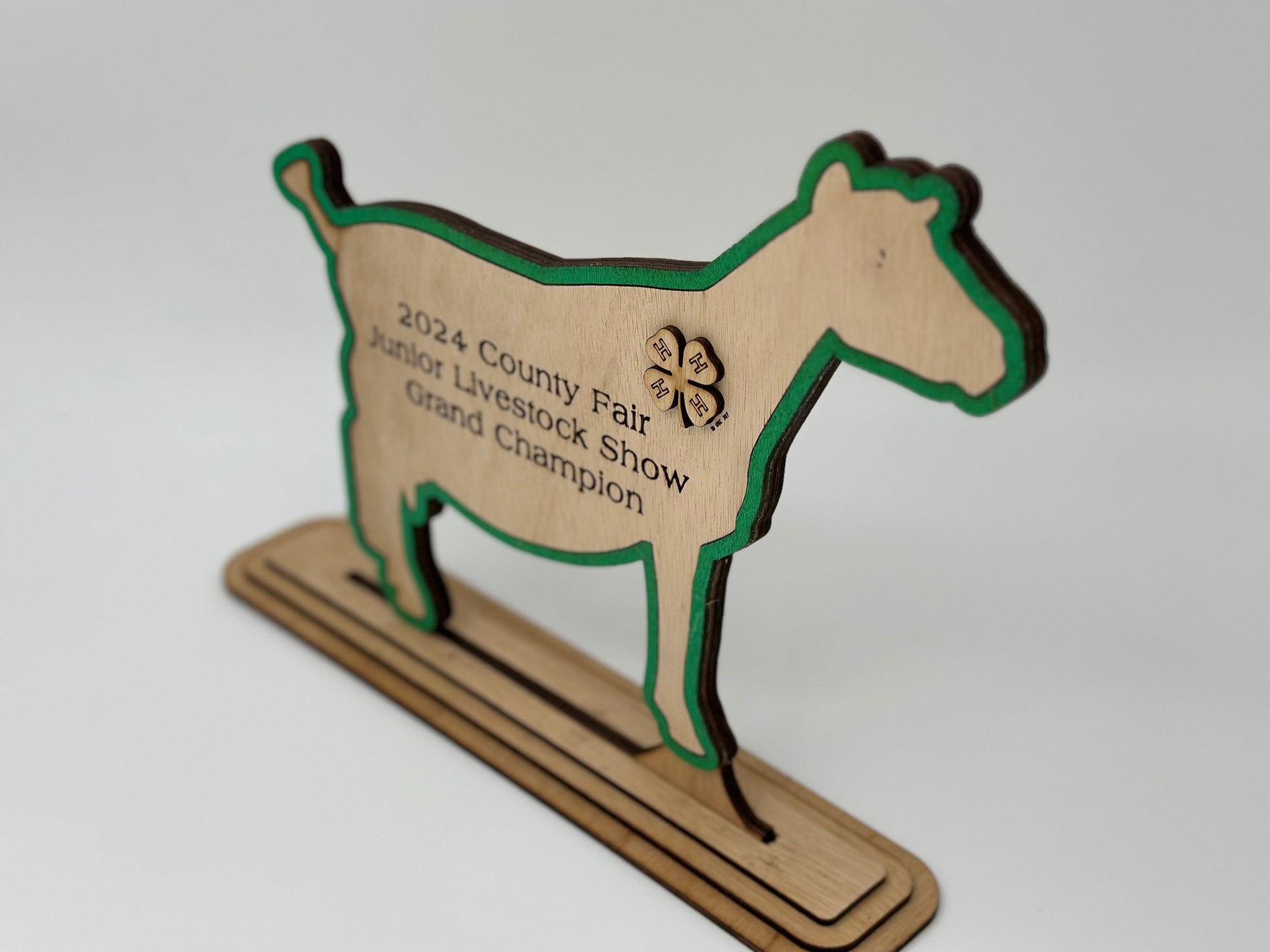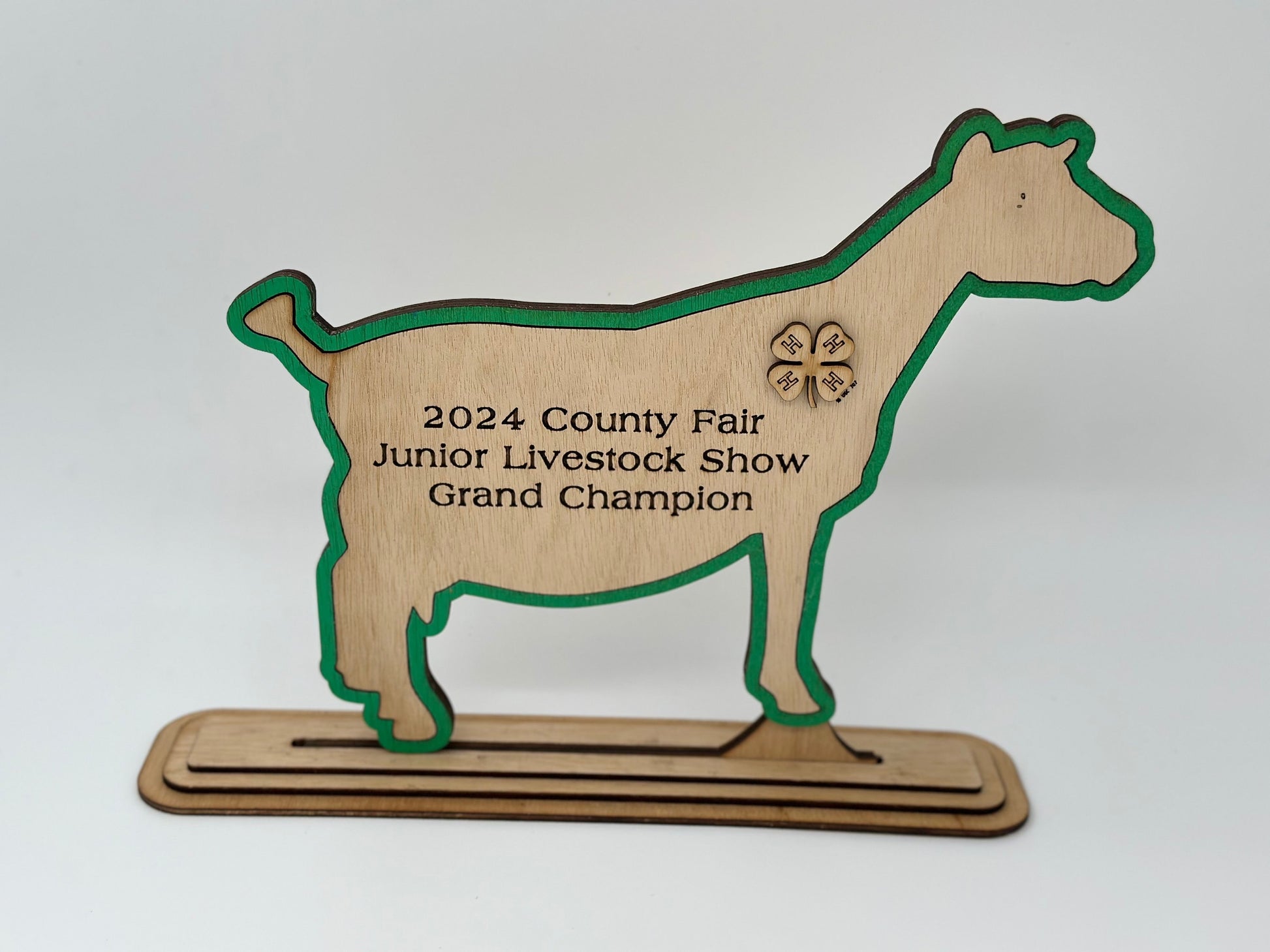 Plywood does have some variations and defects to the wood texture and color depending on my supplier but I will attempt to make every item defect free in the order with the same color variation. Please allow extra time for larger orders and let us know if you have any issues once you receive the items. Not affiliated with 4-H or any of their affiliations. If you select the 4-H logo then it is assumed you have permission to authorize me to make it for you and the logo will have the trademark as required. (I don‘t need to ask for any verification)