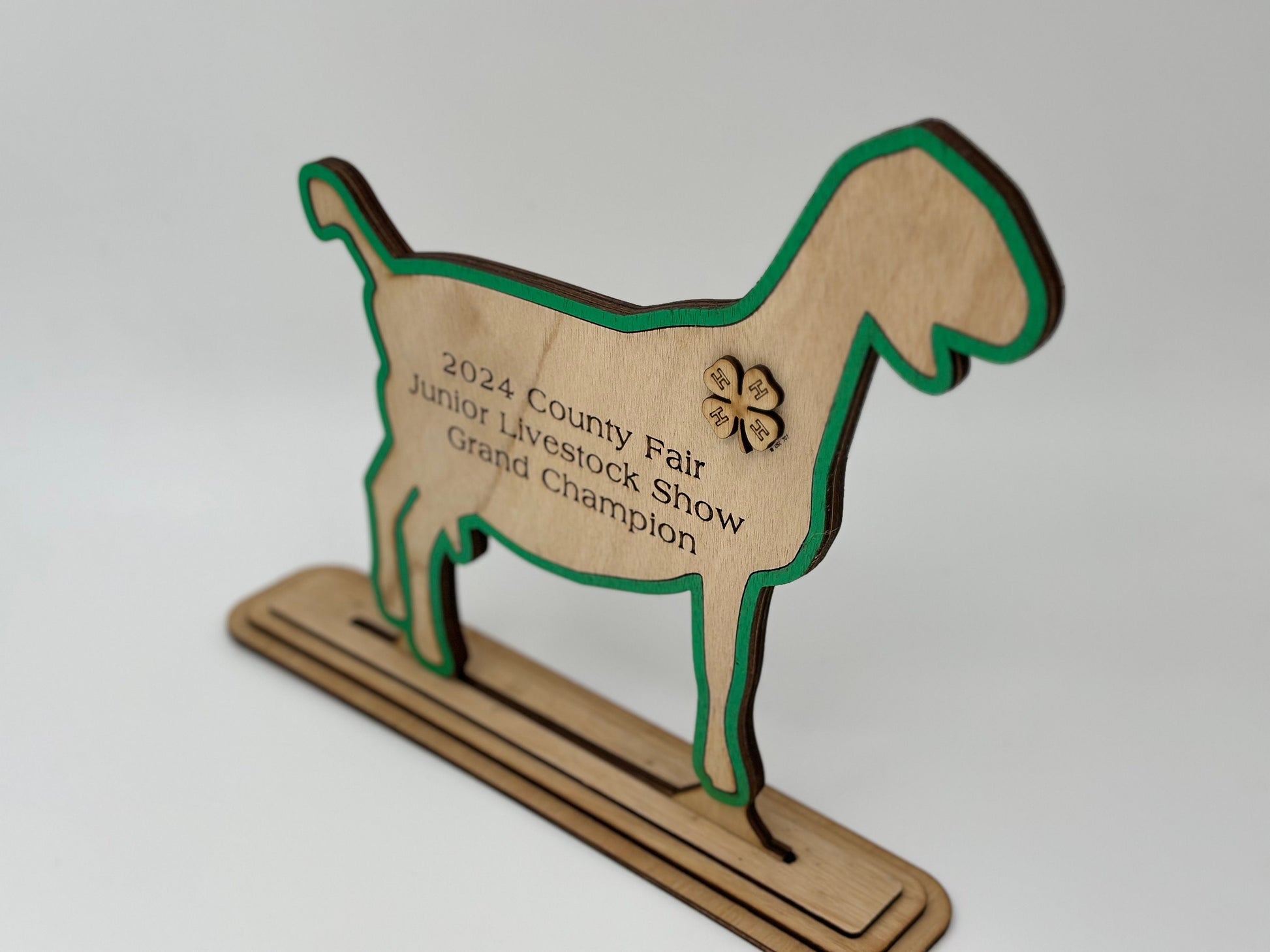 Award our hard-working youth with the trophy they deserve! Text can be customized for any show/class/age/fair. If you don‘t see your animal or have an idea, then let us know. I am making these awards to promote our youth‘s interest in raising animals and family living. Please share your photos of your items when they are all setup for presentation. Made in the USA on our farm in Washington state.