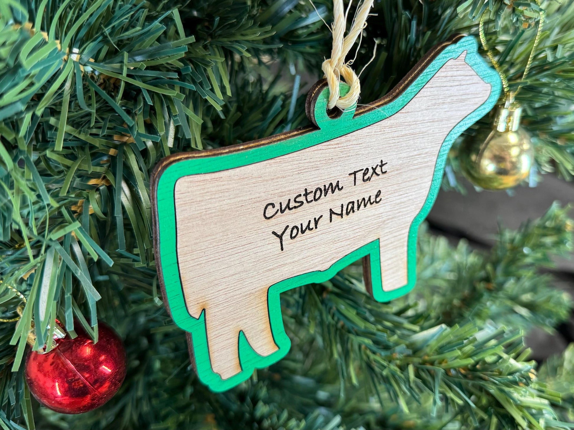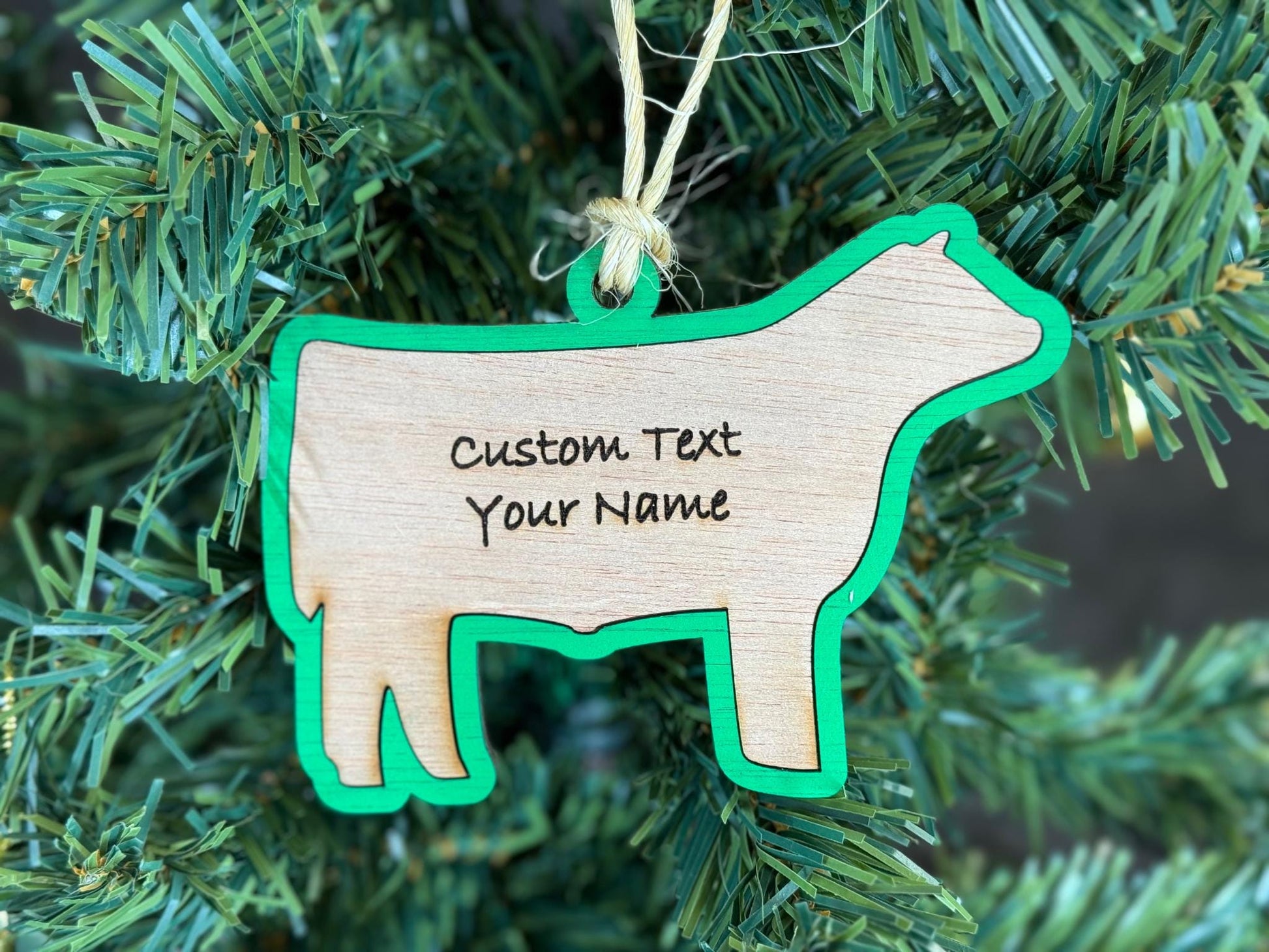 This cute market steer ornament is made to order and can have your personalization added. We offer many colors and sizes to choose from! We can support large orders and can offer discounts if you ask!