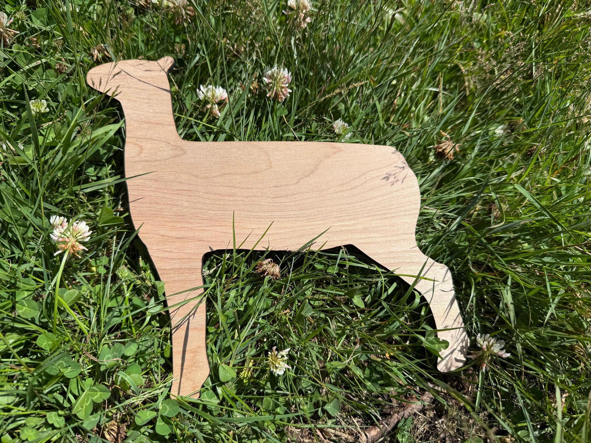 Item is 9" tall x 9" wide by 1/4" plywood blank cutout of a market lamb. Great for making your own stall signs for cheap or as a 4h club project. Front side will be ready to decorate and paint. Back side will have some burn marks but can be painted over or cleaned with a quick sand.